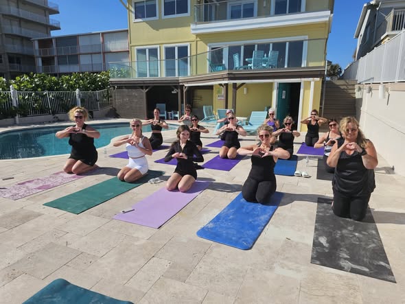 We were honored to host an impromptu 7 AM yoga class during the 25th Annual Serenity Weekend Women’s Conference, held September 12–14, 2025. Originally planned as a peaceful sunrise session overlooking the ocean, we quickly adapted when rain moved us indoors.